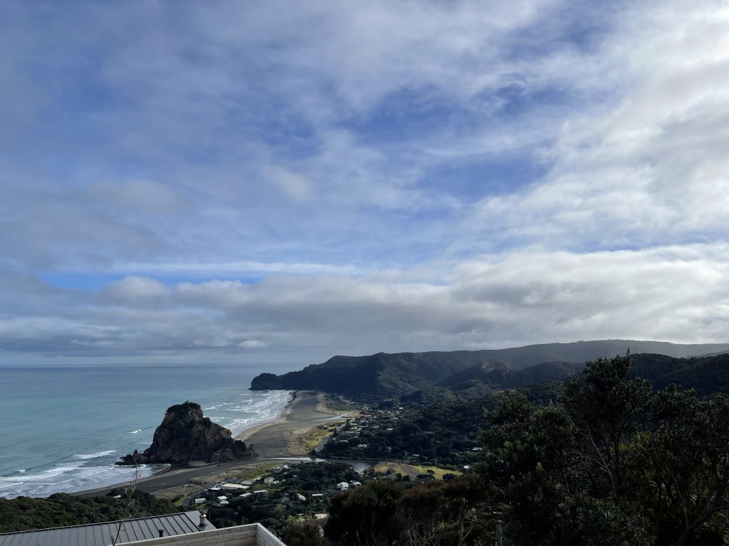 Am Sonntag sind wir zu einem der Strände an der Westküste gefahren. Durch die Überschwemmungen anfang des Jahres sind leider ein paar der Strände noch gesperrt, aber zum Glück war Piha wieder offen und so konnten wir den Strand erkunden. Wir sind am Strand entlang und durch einen kleinen Wald nach oben zu einem sehr schönen Aussichtspunkt Punkt gelaufen. Von dort hatte man einen tollen Blick aufs offene Meer. Leider hab ich das Bild von dem Aussichtspunkt wo wir hinlaufen sind nicht mehr gefunden, aber dafür das Bild. Diese Aussieht hat auf dem Weg nach mit Piha mit dem Auto.