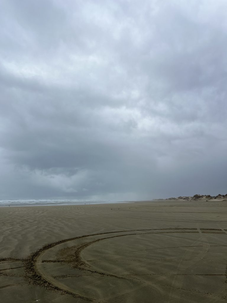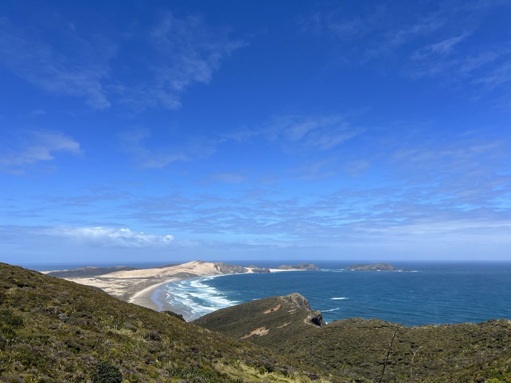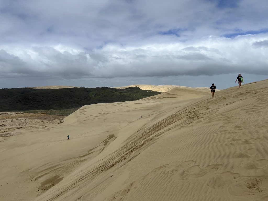 Bei relative gutem Wetter ging es dann weiter in den Norden nach Cape Reinga. Das ist der nördlichste Punkt Neuseelands und dort stoßen die Tasmansee im Westen und der Pazifische Ozean im Osten aufeinander. Relative zügig ging es dann weiter zu den Giant Sand Dunes. Dort haben wir uns Bodyboards geliehen und sind die großen Dunen runter gerutscht. Nach einem kleinen Picknick ging es dann schon weiter zum 90 Miles Strand und schließlich zu unserem nächsten Campingplatz.